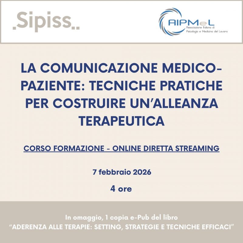 Al termine del corso i partecipanti riceveranno un attestato certificato da Sipiss in collaborazione con l’Associazione Italiana di Psicologia e Medicina del Lavoro.